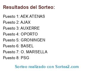 Lista de participantes: AJAX, GRONINGEN, PSG, BASEL, AEK ATENAS, OPORTO, O. MARSELLA, AUXERRE.