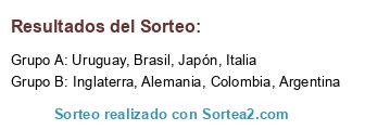 Lista de participantes: Colombia, Inglaterra, Argentina, Brasil, Italia, Alemania, Uruguay, Japón.