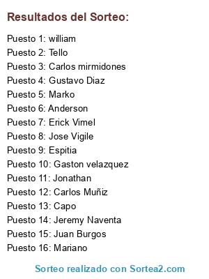 Resultados del sorteo: