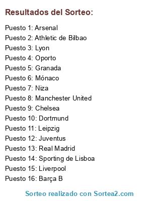 Lista de participantes: Chelsea, Real Madrid, Oporto, Mónaco, Athletic de Bilbao, Barça B, Liverpool, Dortmund, Leipzig, Lyon, Granada, Juventus, Arsenal, Sporting de Lisboa, Niza, Manchester United.