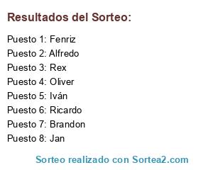 Lista de participantes: Iván, Rex, Brandon, Oliver, Alfredo, Fenriz, Ricardo, Jan.