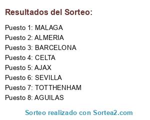 Lista de participantes: TOTTHENHAM, MALAGA, LIVERPOOL, SEVILLA, TORINO, EVERTON, AGUILAS, AJAX, ALMERIA, GIRONA, BARCELONA, CELTA.