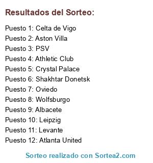 Resultados del sorteo: