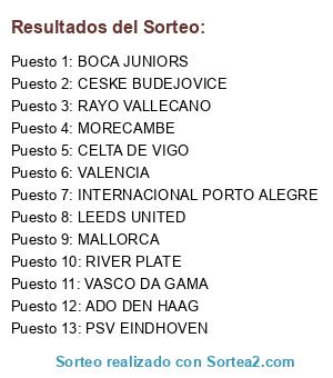 Lista de participantes: ADO DEN HAAG, BOCA JUNIORS, CELTA DE VIGO, CESKE BUDEJOVICE, INTERNACIONAL PORTO ALEGRE, LEEDS UNITED, MALLORCA, MORECAMBE, PSV EINDHOVEN, RAYO VALLECANO, RIVER PLATE, VALENCIA, VASCO DA GAMA.