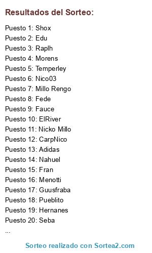 Resultados del sorteo: