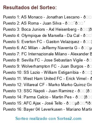 Resultados del sorteo:
