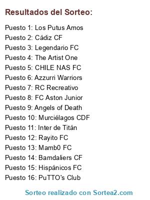 Lista de participantes: RC Recreativo, Legendario FC, PuTTO's Club, Los Putus Amos, The Artist One, Hispánicos FC, Angels of Death, Bamdaliers CF, Murciélagos CDF, Inter de Titán, Rayito FC, Cádiz CF, FC Aston Junior, Azzurri Warriors, Mamb0 FC, CHILE NAS FC.
