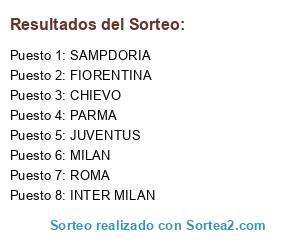 Lista de participantes: FIORENTINA, JUVENTUS, INTER MILAN, MILAN, PARMA, CHIEVO, SAMPDORIA, ROMA.