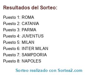 Lista de participantes: CATANIA, JUVENTUS, NAPOLES, MILAN, INTER MILAN, ROMA, PARMA, SAMPDORIA.