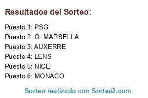 Lista de participantes: AUXERRE, NICE, PSG, MONACO, O. MARSELLA, LENS.