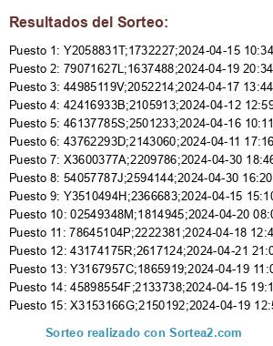 - 2024-05-10 11:32:24 (GMT): Se ejecuta el sorteo