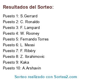 Lista de participantes: Kaka, W. Rooney, Fernando Torres, S.Gerrard, A.Arshavin, F. Ribéry, L. Messi, C. Ronaldo, Z. Ibrahimovic, F. Lampard.