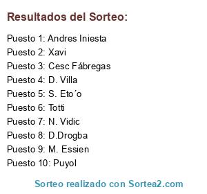 Lista de participantes: Cesc Fábregas, N. Vidic, Totti, Xavi, Puyol, S. Eto´o, M. Essien, D. Villa, Andres Iniesta, D.Drogba.