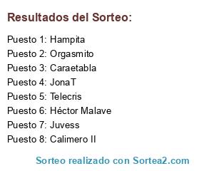 Lista de participantes: Héctor Malave, Hampita, Caraetabla, Telecris, Orgasmito, Juvess, JonaT, Calimero II, IJose.