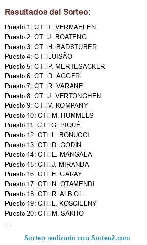 Lista de participantes: CT J. BOATENG, CT G. PIQUÉ, CT M. HUMMELS, CT V. KOMPANY, CT D. GODÍN, CT G. CHIELLINI, CT PEPE, CT M. BENATIA, CT D. LUIZ, CT N. VIDIĆ, CT P. MERTESACKER, CT DANTE, CT J. MIRANDA, CT E. GARAY, CT J. VERTONGHEN, CT M. SAKHO, CT L. KOSCIELNY, CT R. VARANE, CT G. CAHILL, CT D. AGGER, CT L. BONUCCI, CT H. BADSTUBER, CT N. OTAMENDI, CT LUISÃO, CT A. BARZAGLI, CT K. MANOLAS, CT E. MANGALA, CT R. ALBIOL, CT T. VERMAELEN, CT G. RODRÍGUEZ.