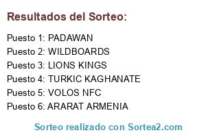 Lista de participantes: ARARAT ARMENIA, VOLOS NFC, WILDBOARDS, PADAWAN, TURKIC KAGHANATE, LIONS KINGS.
