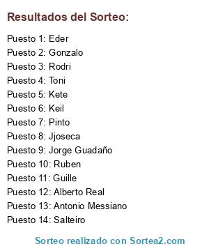 Resultados del sorteo:
