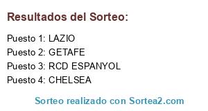 Lista de participantes: LAZIO, GETAFE, CHELSEA, RCD ESPANYOL.