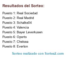 Lista de participantes: Villareal - Rakaldas, Atlético de Madrid - Zefi, Real Sociedad - Sukurpim, Oporto - Bart, Werder Bremen - Aketesnuko, Juventus - Droigner, Arsenal - Carlossocio, Bayern Munich - Sacro.
