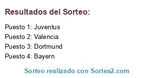 Lista de participantes: Dortmund, Juventus, Valencia, Bayern.