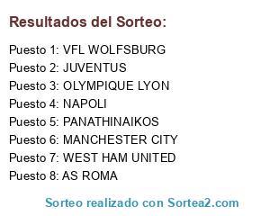 Lista de participantes: MANCHESTER CITY, AS ROMA, WEST HAM UNITED, JUVENTUS, OLYMPIQUE LYON, PANATHINAIKOS, VFL WOLFSBURG, NAPOLI.