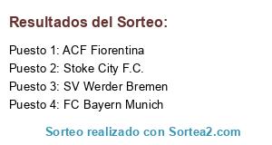 Lista de participantes: Stoke City F.C., ACF Fiorentina, FC Bayern Munich, SV Werder Bremen.