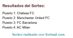 Lista de participantes: FC Barcelona, Manchester United FC, Chelsea FC, AC Milan.