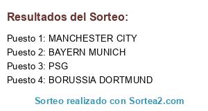 Lista de participantes: BORUSSIA DORTMUND, PSG, BAYERN MUNICH, MANCHESTER CITY.