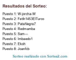 Lista de participantes: Redmamba, Sam---, Fetih1453ElTurco, W-jorcha-W, Ekoh, Joanfcb, PataNegra7, Imbaedo1.