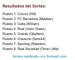 Lista de participantes: Osasuna (Sens44), Real Unión (Swes), FC Barcelona (Malabar), Real Sociedad (Omar Little), Celta (William), Oviedo (Obafemi), Sporting (Rebekin), Coruxo (Hill).