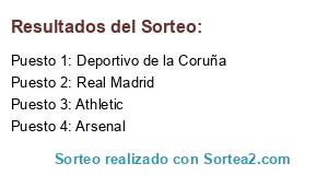 Lista de participantes: Deportivo de la Coruña, Arsenal, Athletic, Real Madrid.