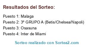 Lista de participantes: 3º GRUPO A (Betis/Chelsea/Napoli), Malaga, Inter de Miami, Osasuna.