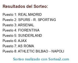 Lista de participantes: PANATHINAIKOS, GALATASARAY, STUTTGART, MANCHESTER CITY, LIVERPOOL, BOR. DORTMUND, Ganador ESPANYOLREAL MADRID, Ganador SCHALKE 04RAYO VALLECANO.