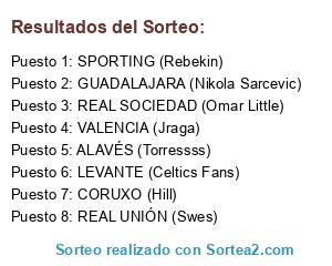 Lista de participantes: REAL UNIÓN (Swes), SPORTING (Rebekin), GUADALAJARA (Nikola Sarcevic), CORUXO (Hill), VALENCIA (Jraga), REAL SOCIEDAD (Omar Little), LEVANTE (Celtics Fans), ALAVÉS (Torressss).