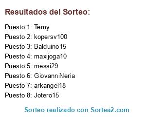Lista de participantes: kopersv100, Jotero15, Temy, arkangel18, maxijoga10, messi29, GiovanniNeria, Balduino15.