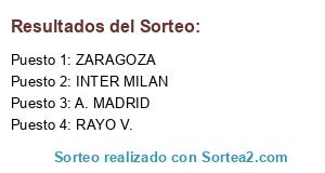 Lista de participantes: INTER MILAN, A. MADRID, RAYO V., ZARAGOZA.