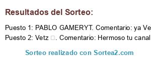 Lista de participantes: Sorteo realizado entre 2 comentarios..