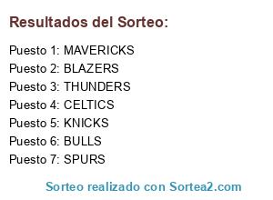 Lista de participantes: BLAZERS, BULLS, CELTICS, KNICKS, MAVERICKS, SPURS, THUNDERS.