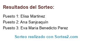 Lista de participantes: Rosa Irene Porro Vercher, Ana María Ramos, Maite Del Paramo Maeso, Patricia Espada Sesar, Ana María Pagán Luna, Isadora Mayandia, Mara Vaño, Manualidades Paqui Barroso, Octalitabalorios Marisol García Linde, El Baúl de Aroa, Maria Luisa Novoa Lopez, Sole GP, Ana Ines Fernandez Prieto, Manvi Viztoria, Toni Bouzas, Irene Masipo Morte, Carmen Garcia Magadan, Ayna Trotamundos, España Lopez Maria Jose, Maria José, Arqui Evart´s, Leo Llopart, Reme Berasategui Gallego, Isabel Dantas Sousa, Lekarinay Art AndDreams, Rosa Maria Arcos, Ana Garcia, Esther Martínez Puebla, Silvia Fernandez Gonzalo, Antonio Bravo, Lourdes Acción Ares, Maria Isabel Pascual Rodríguez, Mari Angeles Romero Utanda, Ana Llombart Oria, Buscador de Sorteos, Maria Jose Torres Torres, Kapitana Corsaria Pirates, Angeles Casas Robles, Elena Knyazhechenko, Jennifer Bonilla Pizarro, Luisa Menargues, Mado Martinez, Mariose Díaz, Sonia Sánchez Palomo, Ana María Lopez, Vanessa Fernandez, Fieltro Felt Feltro Flanel, Chris Hana, Ana Casanov, Tabata Carpente Garica, Antonio GN, Macarena Soria, Susana Gonzalez Castilleros, Mariló Salmerón Fenández, Sandra Sauces Guallar, Arantxa Botella Arauz, Grego Gallardo Paz, Sonia Fernández Anzúa, Fuga Mar, Mariel Duede de los Abrazos, Detallikos En Bolaños, Raquel Bendayan, Noelia Salazar de Liu, Raquel Bueno, Esther Ibarburu Romero, Belén Muñoz Lucas, Kela de Estrada, Angeles Carigelitas, Esther Hidalgo Leal, Neus Herraiz Lopez, Debora Alcázar Soler, Maria T. Romero, Maria Saiz, Emily Raymon, Eva Maria Benedicto Perez, Rakel Fuguet Carrasco, Mayte Pocholas, Paqui Jimenez Monje, Pili Carpente Garcia, Pili Piles, Nerea Garcia Antoñana, María López Iglesias, Rocio Moreno Virgencita Plis España, Yolanda Myms Art, Cucadas En la Red, Mercedes Pachecho Vives, Campanilla VA, Manualidades Pinar, Pilar Ponce Esteve, Manualidades Mayte, Rocio Colmeoiro, Carmen Talavera, Rocio Salinas, Maria Del Carmen Dominguez Rios, Ocalitabalorios Marisol García Linde, Nieves Nieto, Sandra Raya Robles, Maria Angeles Fernández Fernández, Vanessa Fernández Fernández, Perbuin Moni, Gloria Valiente, Sarah Garcia Srlp, Veronica Gomez, Anyka Sanchez Mnz, Raquel Menargues Polo, Angelines Fernandez, Blanca Rodríguez, Andrés Villalón Rodríguez, Pilar Castillo Porras, Raquel del Pozo, Mahiba San Juan Garcia, María Teresa Casillas, Robledo Rio Sandra, Maty Menargues, Núria Garcia, Miriam Abad Navarro, López Negre, Pilar García Sánchez, Cris Kiki, Margarita Isern Gual, Judith Pérez, Maria Carmen Abalorios, Espe Lupii, Jenny Perez Diaz, Esther Ramirez, Adela Sendra Montes, Lydia Lopez Millan, Nuria Bueno, Elis VM, El Rincón de Disidra, Montserrat Beltran Maset, Maria Jesús Albadalejo Cavas, Concepción López DEL Castillo, MariaRosa Fdz Lasquetty Blanc, Cosas de Conchi, Beatriz Arroyo Martínez, Marisol Martinez Cava, Carmen Rodriguez Llinares, Koloreskarmen, Ingrid Kirey, Julia Tierra Menjibar, Carmen Garcia Moreno, Angela Carpente Garcia, Elena Alvarez Bustelo, Lujan Llorente, Marga Repetto, Ana Maria Benitez Molina, Inmaculada Fernandez Rovira, Virginia Lopez Zaton, Carmen Ortiz, Bea Gomez, Mónika Onandía, Lucía Lima, Josep Ortiz, Dulce GV, Patricia Romero Roldán, Anabel Rd, Susana Abad, Angela D Dorado, Clotilde LGimenez, Feli Santos Perez, Veronica Peñasco, Avon Anne, Fifi Mieres Ablaña, Rebe de RebecaCreaciones, Nuria Panadero Aguado, Carmen Contreras, Vanessa Maria, Marta Exposito Diaz, Akane Ojitos de Madera, Loulou Manualidades, Sandra Sabariego, Maria Isabel R, Ana Bermudez Pelaez, Maria Fernandez Tor, Isi Ggra, Mari Carmen Morejon, Irene Navarro Fuster, Nagore Arostegui Rojo, Yoli Olid, Silvia Fontao, Rosa María Siera Álvarez, Fina Benavides, Sonia Adelantado Garcia, Mariloly Grajero, Dorleta Sofitxu Sa, Pilar George Street, El Pequeño Joyero de Lis, Pilar Gonzalez Barrera, Sonia Alvarez, Soraya Mariano, Anais Lopez, Lucia Mendez, Ana Maria Ramos, Maite Del Páramo Maeso, Manualidades Lunita, Carmen Garcia Onsurbe, Luisa María, Virginia Acevedo, Amparo Vives Senent, Natalia Báez Arencibia, Sonia Garica Vilas, Fofuchas Nita, Mari Carmen, Lestón Dominguez Monica, Beatriz Gutiérrez Beiro, Patricia Calderon Alcaine, Ana Isabel Calleja, Rosa Navarro, Gloria Urquidi, A Pequena Un, Leo Haba, Mariló Salmerón Fernández, Rosa Alcalde Gonzalez, Zulema Pontes Vidal, Maty Menarguez, Adela Gonzalez Flotats, Maria Jose Jo, Mari Carmen Abalorios, Elisa Martinez, Inma Cervera, Maria Jesús Albaladejo Cavas, Bibicreations Sgm, Elena Gonzalez Lara, Remedios Fortes Martín, Luisa Maria Garcia Repiso, Cruz Maria, Belen Diaz, Bea Gomez Lucia Lima, Solo Con Las Manos, Carmen Fernandez Avello, Tere Avello Perez, Miriam V. Fernández Rodríguez, Carmen Arocha Martos, Pilar Moreno Madrid, Maria Jaldo, Ana Sanjoaquín, Nuria Vila, Maria Heredero Yuste, Tabata Carpente Garcia, Angeles Fernandez Garcia, Enmarina M.t, Araceli Diez Gallego, Paula Montoya Turón, Gema Tortosa, Erena Moon, Sandri la Bruji, Veronica Sorli Galiana, Isa Mengual Molto, Maika Miguens Guenaga, Rosana Boix Romero, Laura Ruiz Godoy, Raquel Juan Martí, Sonia Delcán Moreno, Rocio Garcia Corzo, Susi Solera, Yemi Bernal Egeda, Abelardo León González, Elena Signes, Eva Arias Navarro, Mamen Gil Garcia, Ana María Gutierrez, Maria Luisa Rios Enriquez, Cristina Fallereta, Lara Diaz Monllor, Lola Escalona Ponce, Maria Muñoz Muñoz, MPilar Guindulain Lopez, Decoluisa, Pilar Cáceres, Lourdes Baines, Pilar Peiro Garcia, Clara Casc, stefania sterpu, Eva Maria mañana, Vanessa León Borrueco, Play Art, Carmen López, Mis papuchis mis papuchis, Ana Maria Andeliño, Encarni Ordoñez Moreno, Mar Tere Santiago Aranda, Tesi amb t, Ma ca, Raquel dura, Menxu Rovira, Kyma Navas, Lucia Ribera Rios, Almu Feal, Mari Tere Santiago Aranda, Ana Alonso Corral, Mariajosé Moyano, Lola Muñoz Gonzalez, Lluïsa Morera Royo, Nerea Rodriguez Albalat, Con Estas Manitas, Elle Ramírez, Carolina Morales, Marta Alonso Garcia, Ylia