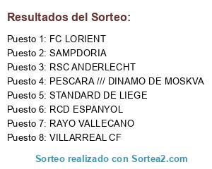 Lista de participantes: RAYO VALLECANO, STANDARD DE LIEGE, VILLARREAL CF, SAMPDORIA, FC LORIENT, RCD ESPANYOL, PESCARA /// DINAMO DE MOSKVA, RSC ANDERLECHT.