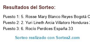- Puesto 1: 5. Rosse Mary Blanco Reyes Bogotá Colombia 36