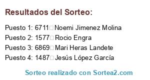 Lista de participantes: 2 Isa Gomez , 4 Cristina Lopez , 6 Jesus Argandoña Hernandez , 8 Rosi Martínez Lopez , 11 Paqui Picazo Piqueras , 16 Verónica Mellinas Sánchez , 17 Rosa De Las Heras , 18 Paqui Picazo Lopez , 19 Jose Gabriel Melero Gomez , 20 Mari Heras Landete , 25 Rosa Mari Cruz , 31 Rocio Engra , 33 Charo Jimenez Moreno , 39 Elisa Gomez , 44 Carmen Cabañero Lopez , 45 Pedro Ruiz , 46 Alicia Rodriguez Martinez , 47 Jose Gabriel Melero Gomez , 48 Alicia Rodriguez Martinez , 49 Lucia Ortega , 50 Angus Young , 53 Mari Heras Landete , 54 Rosa Mari Cruz , 55 Francisco Jose Peinado Garcia , 58 Llanos Royo Carretero , 62 Cristina Lopez Pinar , 64 Leticia Lorenzo Gallego , 65 María Ángeles López , 66 Jose Luis Copete Castillo , 69 Acinorev Onarres , 70 Nuria Lozano Pérez , 72 Mónica C. Fdez , 73 Ana Carrillo Lozano , 74 Patricia Sanchez Gomez , 75 Maria Vazquez Martinez , 79 Nieves Bernabeu , 80 Mawi Cádiz , 84 Jose Sanchez Snakes , 86 Julio Garrido , 87 Maria Isabel P , 90 Lucía Sahuquillo Temprado , 93 Ana Requena Morote , 94 Carmen Herreros , 100 Magdalena Campos Sánchez , 101 Monica Montero , 107 Carmen Cabañero Lopez , 109 Cristina Polosú , 110 Gema Arenas Morcillo , 111 Cristina RV , 112 Rocio Martinez Barba , 114 Fatima Martinez Alcala , 117 Rosi Martínez Lopez , 118 Alicia Galera , 119 Anabel Canovas Silvestre , 122 Mari Carmen Muñoz Lopez , 124 Carol Martinez Auñon , 125 Raquel Lopez , 126 Javier Arraez Chumillas , 128 Mari Carmen Pardo Ortega , 130 Raquel Escudero Mercado , 131 María Jesús Mo Ba , 133 Candy Perez , 134 Julian Carcelen , 135 Mariajose Solmardia , 136 Nany Palencia , 138 Cristina RV , 139 Andrés Catalán , 143 Nuria Molina , 145 Beatriz Raluy Morcillo , 146 Mariluz Ortega Gonzalez , 151 Yeray De Lamo Carcelen , 152 María Isabel Bautista Amores , 156 Raquel García Moratalla , 157 Conchi Garcia Garcia , 158 Paqui Picazo Piqueras , 163 Ezequiel Mínguez , 165 Alicia Garcia Sanchez , 170 Sonia Piñero Ortiz , 172 Grego Abellan , 176 Lauris Cuesta , 178 Jesus Argandoña Hernandez , 179 Edgar Vivancos Lopez , 180 Esther Ortega Garcia , 192 Borja Cuartero Muñoz , 194 Maria Mar , 195 Bea Moreno , 198 Nieves Sevilla Gómez , 199 Ana Fernández Torrente , 201 Llanos Blazquez , 202 Esme Feliz , 203 Loles Ruiz , 210 Toñi Alfaro , 212 Juan Rodriguez , 214 Muñoz Pilar , 217 Maria Carmen Carrion Jimenez , 218 Azahara Corcoles Fajardo , 219 Ramon Rodriguez , 220 Elena Fernandez , 222 Ana Palacios , 223 Antonia Muñoz , 225 Encarni Cifuentes Baidez , 236 Karen Galdón López , 240 Lorena Gutiérrez , 242 Cristina Tercero Alfaro , 244 Loli Melero Notario , 250 Sandra Garciag , 251 Maria Jose Cabezuelo , 255 Herminia Valera Herraiz , 259 Rosa M Picazo Picazo , 269 Luis Gallego Pacheco , 272 Isa SH , 275 Esther García , 278 Marian Hidalgo Martínez , 281 Luisa Saiz , 291 Laura Tobarra , 294 Eva Luzon Soriano , 296 Nieves Castellanos , 297 Inma Gonzalez , 298 SandrIta CM , 299 Silvia Heredia Vizcaya , 300 Luis Toboso , 302 Lucia Ortega , 305 Palmy Muela , 307 Valentina Sánchez Martínez , 308 Chelo Jimenez Cerdan , 309 Ana Palacios , 310 Mari Heras Landete , 315 MJose Saiz , 316 Pily Tebar , 317 Fatima Martinez Alcala , 319 Ovi Sanchez , 324 Jesus Argandoña Hernandez , 328 Ezequiel Mínguez , 329 Elisa Rubio , 332 Paola Andrea Piedrahita , 333 Isa Navarro , 336 Sandra Garciag , 337 Javier Abellan Jimenez , 339 Nieves Sevilla Gómez , 340 Aurora Abietar Medrano , 341 Jose María Andújar Lapeña , 343 Pedro Ruiz , 345 Maria Mar , 347 Conchi Caballero , 348 Sonia Piñero Ortiz , 349 Cristina González García , 350 Antonia Armenteros , 352 Antonia Muñoz , 353 Rosi Martínez Lopez , 354 Lourdes Lorenzo Gallego , 357 Kamila Jozefow , 364 Maria Angeles Alcahut Lizán , 365 Ana Talaya , 366 Encarni Vizcaíno Molina , 370 Maria Sanchez Valenciano , 373 Nuria Mondéjar Sahuquillo , 374 Luis Toboso , 377 Inma Cabezuelo Lozano , 378 Lucía Sahuquillo Temprado , 379 Maria Do , 380 Marta Ballesteros Prior , 381 Sonia Carrion Rodriguez , 385 Ana Nieto Torres , 386 Leticia Lorenzo Gallego , 388 Alicia Rodriguez Martinez , 394 Rocio Engra , 396 Jose Angel Ruiz Arcas , 398 Laura Moreno , 399 Andrés Oñate Prieto , 401 Sergio Jimenez Sevilla , 402 Irene Gregorio , 403 Patricia Sanchez Gomez , 404 Sandra Blázquez Gutiérrez , 407 Charly Gomez , 408 Cristi Cristi , 409 Cristina Martinez Pardo , 414 Angeles Iniesta , 415 Laura Sanchez , 416 Montse Mery Mery , 417 Cristina Córcoles Gil , 421 Cristina Lopez Pinar , 422 Laura Llacer , 425 Rocio Jimenez Tortosa , 427 Gema Arenas Morcillo , 429 Monica HM , 432 Sandra Rubio Fernandez , 437 Marta HU , 438 Silvia Marin Casas , 439 Ana Ocaña , 440 Julian Carcelen , 443 Rebeca Martinez Cebrian , 444 Mary Joe Zornoza Requena , 450 Loles Ruiz , 451 Raquel Lopez , 452 Jose Antonio Lopez Castaño , 453 Cristina RV , 454 Lauri Logar , 455 Ioana Dumitru , 458 Lauris Cuesta , 460 Nany Palencia , 467 Maria Berbel , 471 Sacramento Martinez Rodriguez , 472 Mariajose Solmardia , 474 Andrés Catalán , 475 Almudena Jimenez Molina , 479 Belen Piqueras Garcia , 480 Monica Montero , 481 Maria Jose Sahuquillo Martinez , 482 Maria Dolores Cruz , 485 Juanjo Moreno Sánchez , 492 Javi Lajara , 493 Llanos Buendía , 494 Loli Melero Notario , 496 María Jesús Mo Ba , 497 Acinorev Onarres , 499 David ML , 504 Mawi Cádiz , 505 Jose Gabriel Melero Gomez , 506 Miriam Ortega , 511 Angus Young , 512 Laura Martínez Sevilla , 513 Raquel Pastrana Perez , 515 Lidia Pobrecicamia Molina , 516 David Blesa Armenteros , 522 Diego Argandoña Hernandez , 524 Cristina Lopez , 525 María Cantarero , 529 Fanny Jiménez , 530 Sara Moreno Marcos , 533 Sony Zori , 537 Mari Carmen Mateo Gomez , 541 Maria Jose Cabezuelo , 543 Isa SH , 544 Eva Luzon Soriano , 546 Pilar Montoya , 553 Mónica C. Fdez , 554 Barbara Garcia Tolosa , 556 Esther Escribano , 559 Jose Luis Copete Castillo , 560 Encarna Alonso Jimenez , 562 Pedro Soler Ballesteros , 563 Maria Garcia Lozano , 568 In