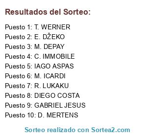 Lista de participantes: E. DŽEKO, M. ICARDI, C. IMMOBILE, DIEGO COSTA, GABRIEL JESUS, M. DEPAY, T. WERNER, IAGO ASPAS, R. LUKAKU, D. MERTENS.
