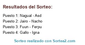 Lista de participantes: Jairo - Nacho, Gallo - Igna, Fuun - Ferpu, Nagual - Asd.