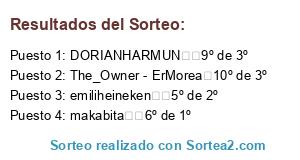 Lista de participantes: emiliheineken 5º de 2º, makabita 6º de 1º, DORIANHARMUN 9º de 3º, The_Owner - ErMorea 10º de 3º.