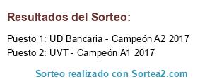 Lista de participantes: UVT - Campeón A1 2017, UD Bancaria - Campeón A2 2017.
