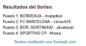 Lista de participantes: SPORTING CP - Morea, FC BARCELONA - JJcrack10, BORDEAUX - mojopikon, BOR. DORTMUND - Javatocan.