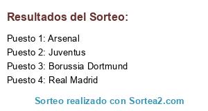 Lista de participantes: Borussia Dortmund, Real Madrid, Arsenal, Juventus.