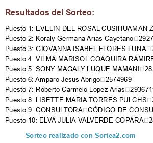 Resultados del sorteo: