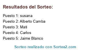 Lista de participantes: Miguel Angel Camacho Prado, Victor, Roberto, javifg, Jorge Garcia, p.gabella, Sergioo, David g, Lbuski, Luis, Lutero20, Carlos, susana, Rube Aj, Pakoko, Angeles, Guillermo, Alfredo, carlos jover, DaevUno, Jaime Blanco, @unperroflaco, Alexdros, Mario Ordoñez, Litospe, Josue Marte, Allen_Iverson, jose antonio luque cruz, Mario Marín, Jose, Javier el del las 8:00 AM, Santi Ruiz, Javier 2 el de las 9:13 AM, juan, Sergio Gorroño, Jose Miguel Acosta, camarbe, humidificadorman, Pumuky, Rafa L., Rober, Sergio, Tomas, Jose Luis, Mati, Javier Ostolaza, Lluriet, Alberto, Enrique, Jesus Bonaño Navarro, isabelzm, Chaa, Fco Javier, Alberto Camba, Johan, Nora, rafael, Edison, Maria, Alvar0, Maripaz, .